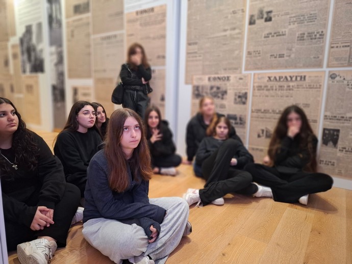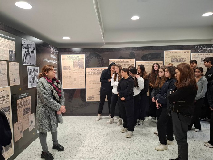 Οι μαθητές/τριες των τμημάτων Γ4 και Γ5 είχαν την ευκαιρία μέσα από την έκθεση «70 χρόνια του απελευθερωτικού Αγώνα της ΕΟΚΑ 1955-59» να ενημερωθούν και να ανατρέξουν σε πολύτιμα αρχεία εφημερίδων και περιοδικών και στο πλούσιο φωτογραφικό αρχείο του Γραφείου Τύπου και Πληροφοριών για τις καθοριστικές στιγμές του κορυφαίου Αγώνα της σύγχρονης κυπριακής ιστορίας και το ιστορικό πλαίσιο, όπου γεννήθηκε και αναπτύχθηκε ο αγώνας. Η έκθεση στόχευε να αναδείξει και να καλλιεργήσει στη συνείδηση των μαθητών/τριών ότι η ιστορία μας δεν θα χαθεί, τα γεγονότα, οι θυσίες, οι άνθρωποι και τα ιδανικά θα συνεχίσουν να μιλούν και να διδάσκουν πως πρέπει να αγωνιζόμαστε για υπεράσπιση των αξιών που μας καθόρισαν ως λαό.
