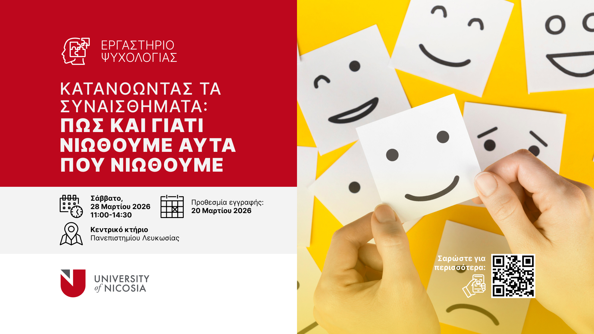 - 01-03-2026 - Εργαστήρι Ψυχολογίας με θέμα: "Κατανοώντας τα συναισθήματα: Πώς και γιατί νιώθουμε αυτά που νιώθουμε"
